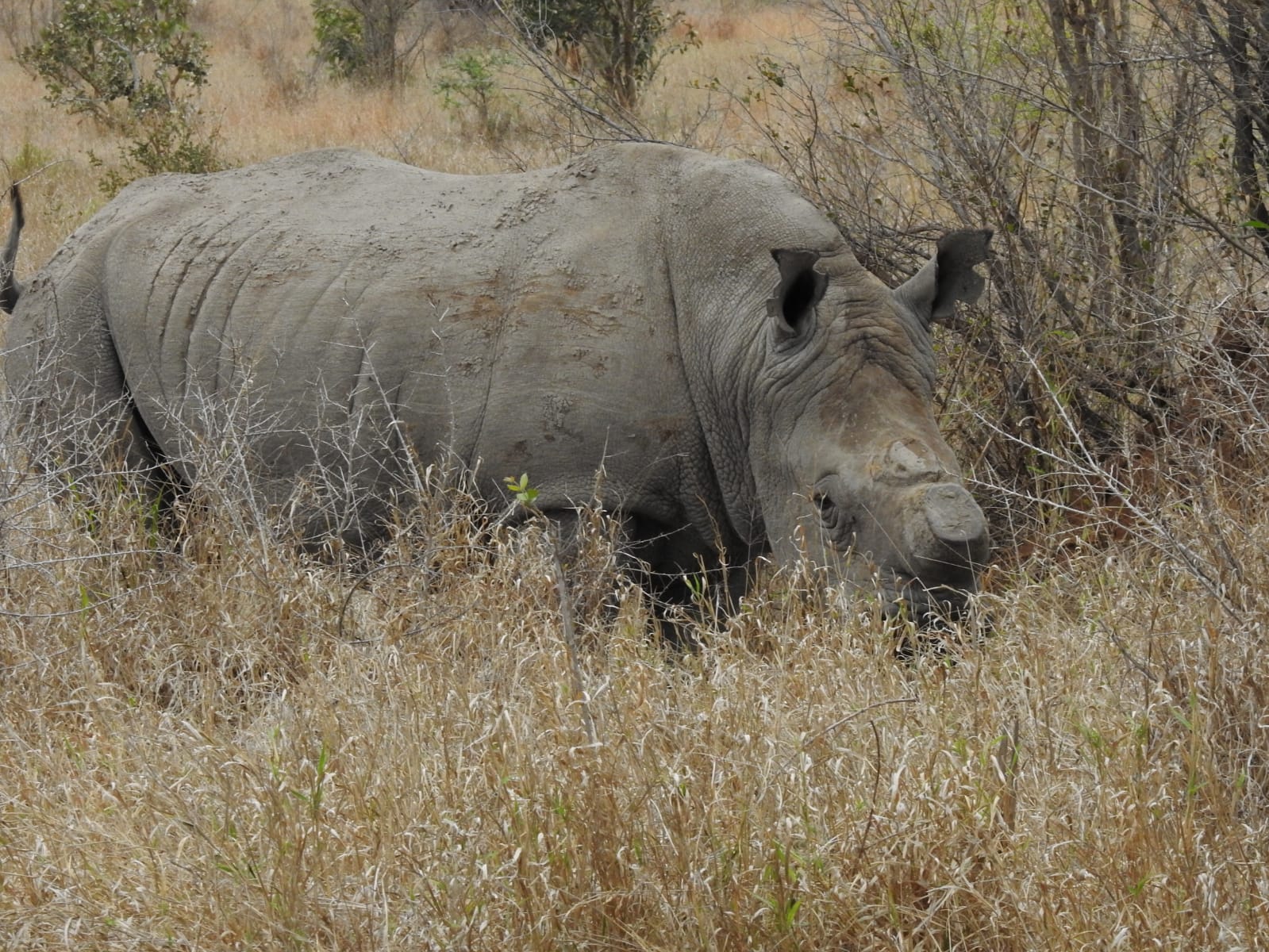 After a long (but not long enough!) sleep, I was up and ready to start the search for the remaining Big Five members to complete my goal of seeing them all. The day started with a magnificent sighting of a white rhino bull. I could not believe my luck! He was so relaxed and so calm right next to the road, and even better, I had the sighting all to myself as it was early morning and other visitors were few and far between. I watched him as he slowly moved through the bush with his head low, hovering up the grass beneath his feet. He was a very relaxed and content rhino.