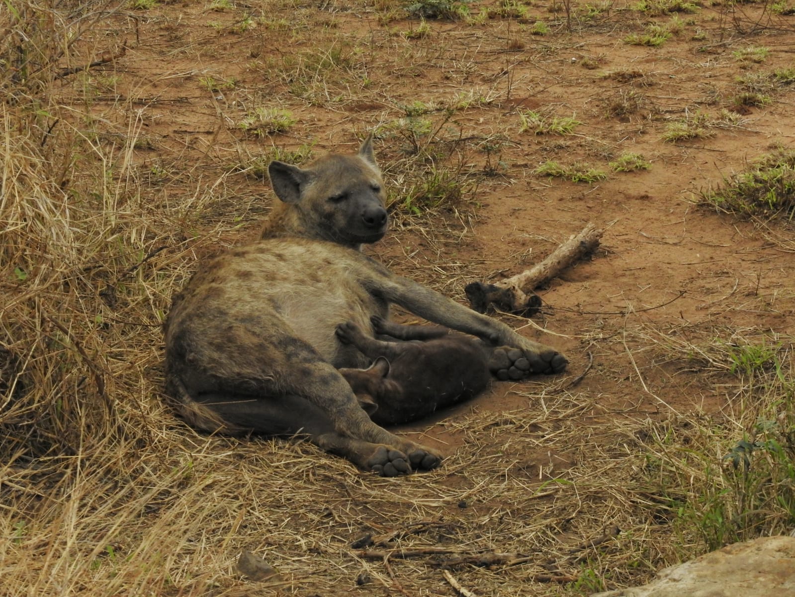 There was a beautiful moment when I saw a mother spotted hyena suckling a youngster outside of her den just off the road. It was so amazing to see her outside during the day and to see a cub so young. Both were relaxed with myself and two other cars watching them.
