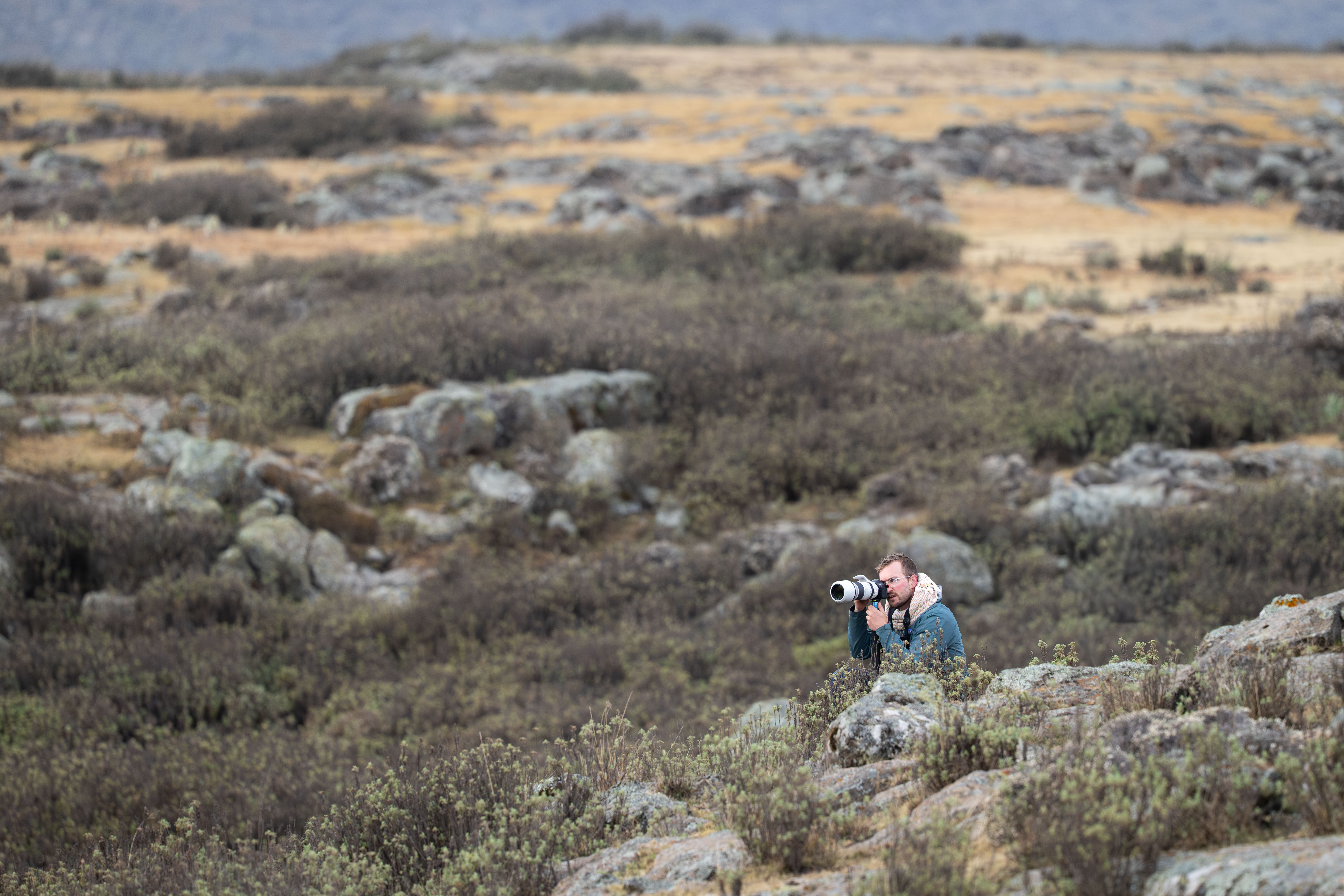 - Photographic Gear: While a close sighting is possible, most of our sightings of the wolves were at least 50 meters away. For a lens I’d recommend as much reach as possible. 400–600mm range ideally with a 1.4 or 2x teleconverter. Wide angle lens for landscapes. A tripod is also useful while on foot. Wolves in the Sanetti Platteau have a reputation for being more habituated, so sightings there may be closer.