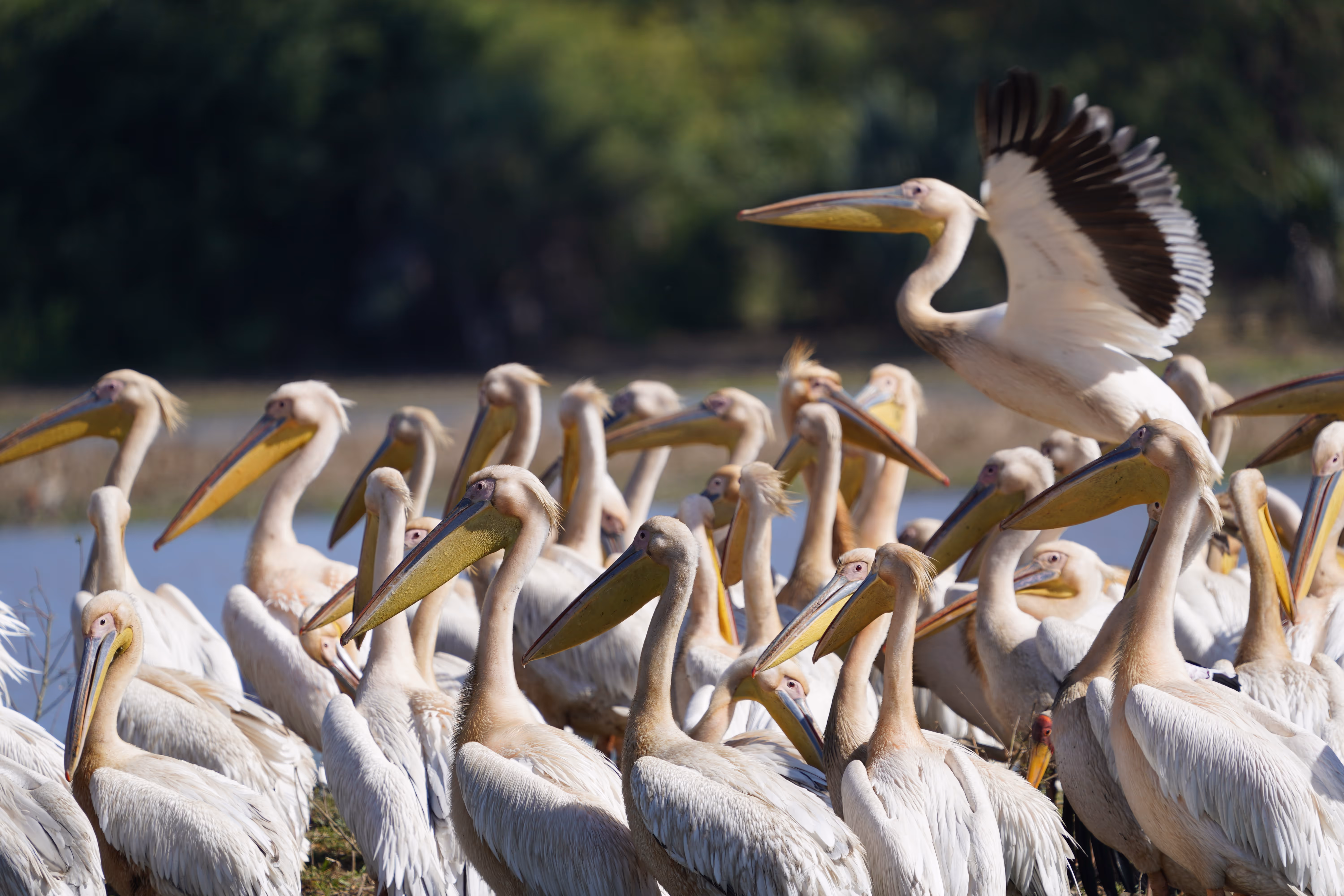 Brett: "One morning, over coffee by a natural pan, we spotted a massive flock of great white pelicans, a breathtaking sight in the early light"